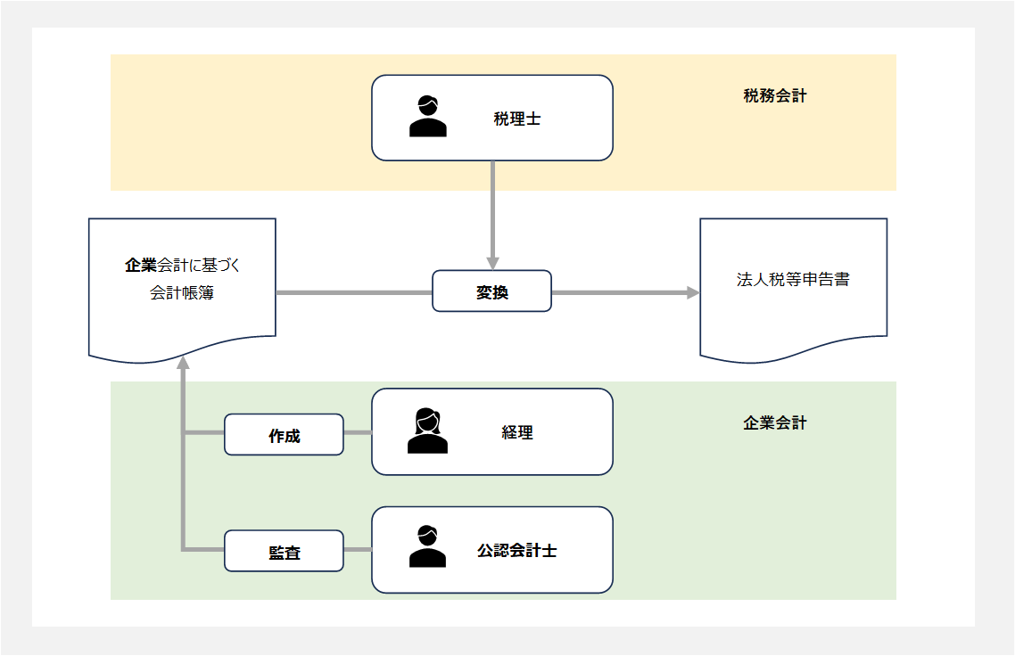 一つの理由は、法人税等申告書を作成して納税を行うのはほぼ全ての法人の義務ですが、企業会計に基づく会計帳簿について公認会計士の監査を受ける義務は、会社法上の大会社や上場企業等に限定されていることが挙げられます。