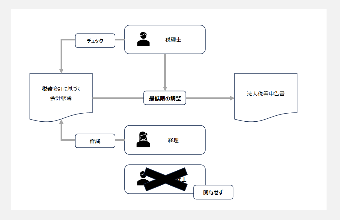 そのため、税務署さえ意識しておけば済み、ベースとなる会計帳簿を税務会計に基づき作成してしまうという対応が多く取られます。これにより、一度企業会計に基づき記帳をしてから変換するという工程を踏まなくて良くなるため、大幅に手間が削減できるからです。