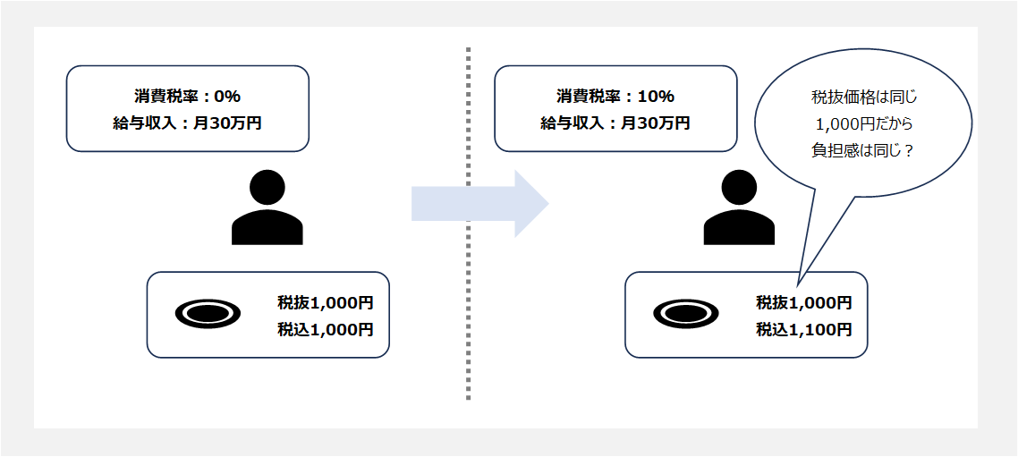 この時、消費税率によって消費者の行動が変わることは想定されません。消費者は、最終的な消費税額を含む負担と、反対給付から得られる便益を比較して意思決定を行っていると考えられるからです。